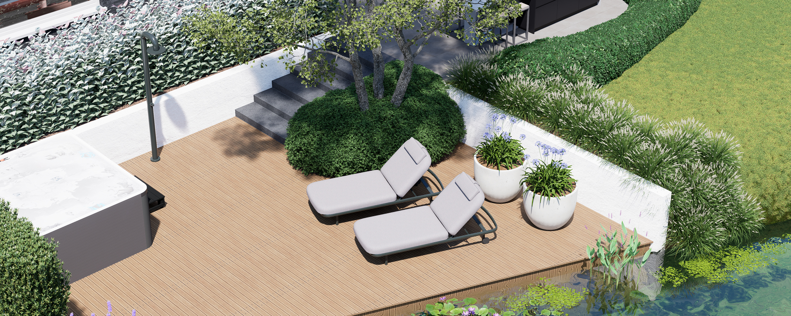 In tegenstelling tot een plattegrond biedt een 3D-visualisatie de mogelijkheid om de tuin vanuit verschillende invalshoeken te bekijken.Zo krijgt u een beter beeld van de verhoudingen, hoogteverschillen, beplanting en de manier waarop alle elementen samenkomen. Het voelt bijna alsof u al door uw nieuwe tuin loopt!